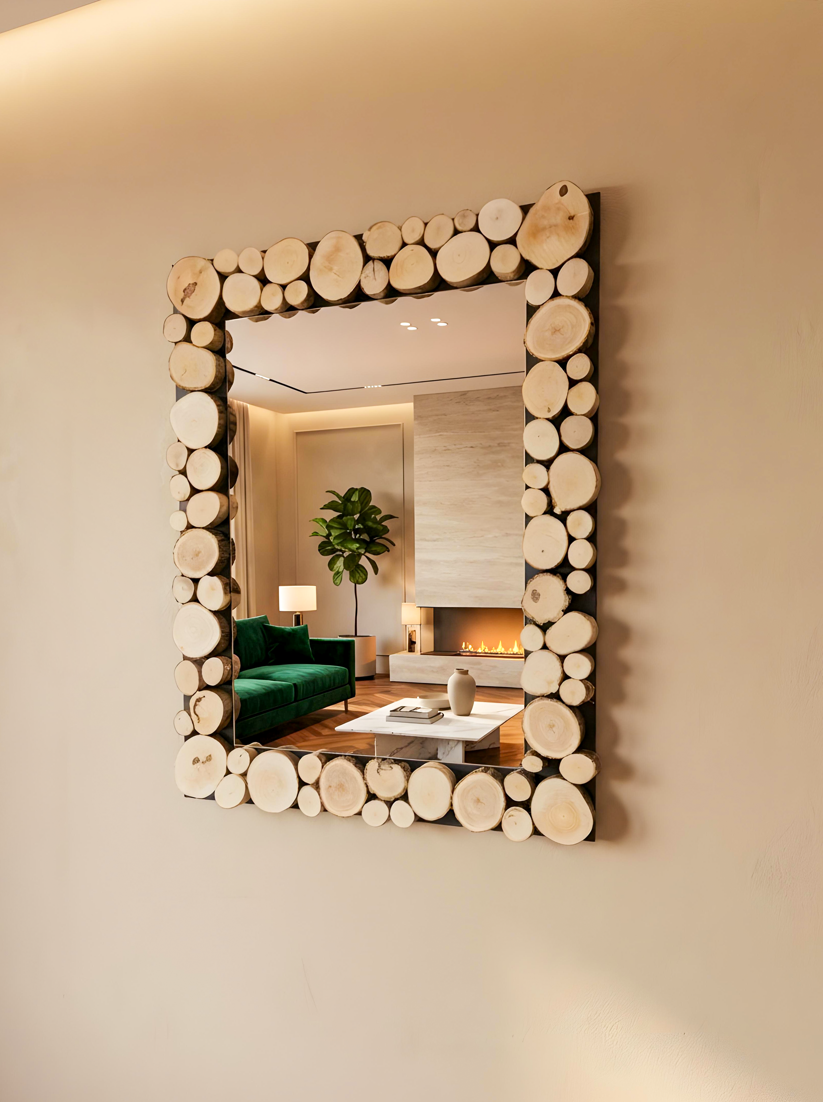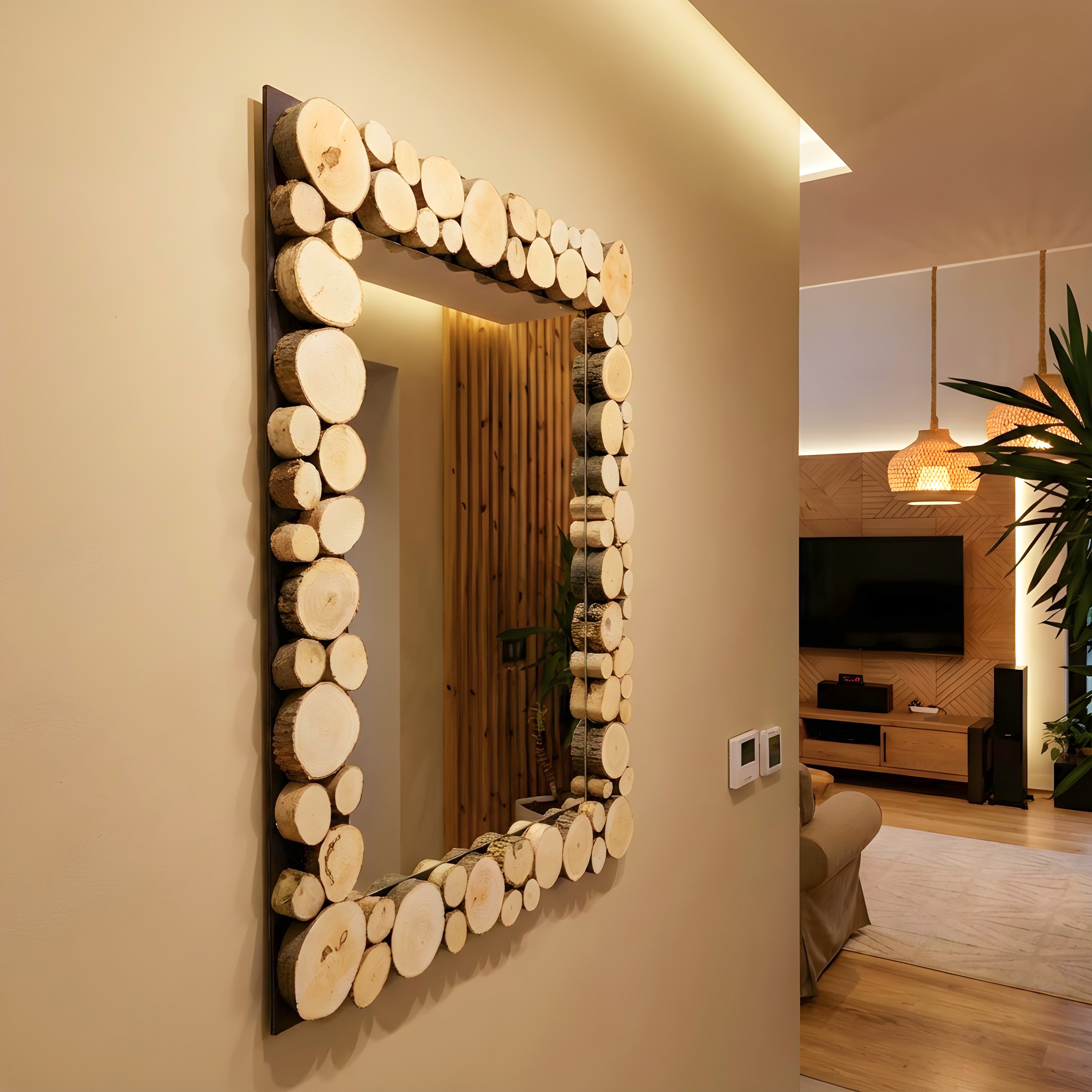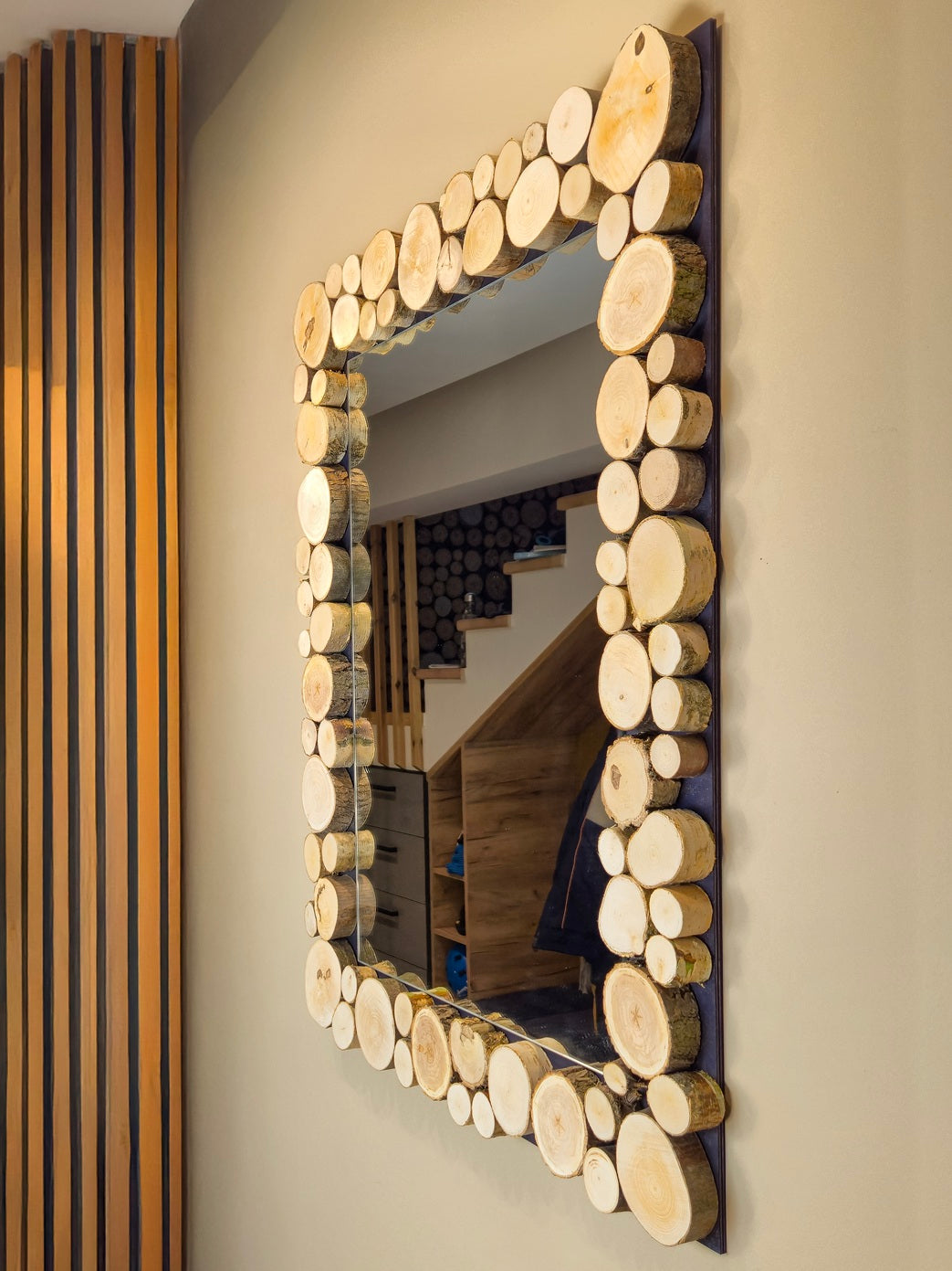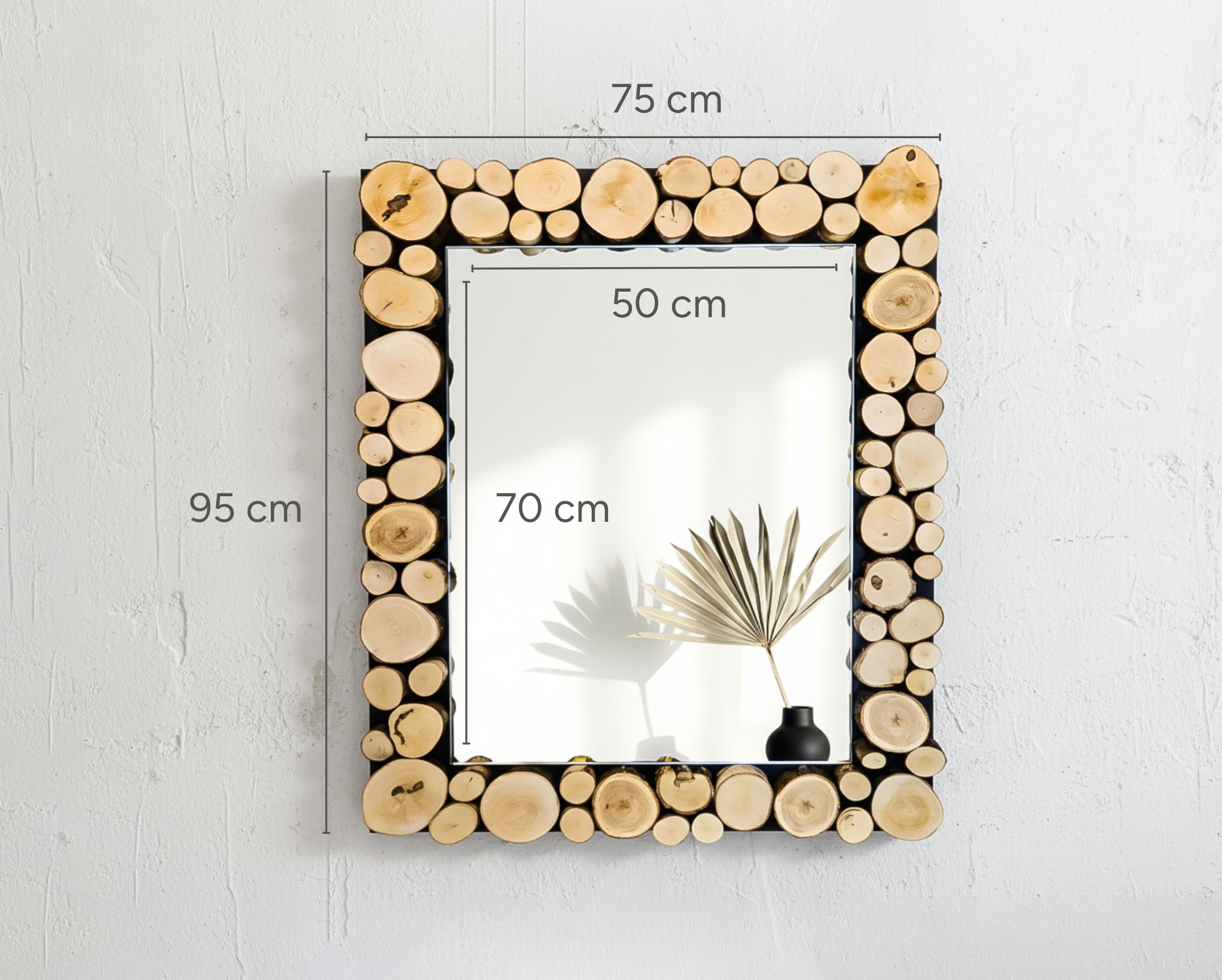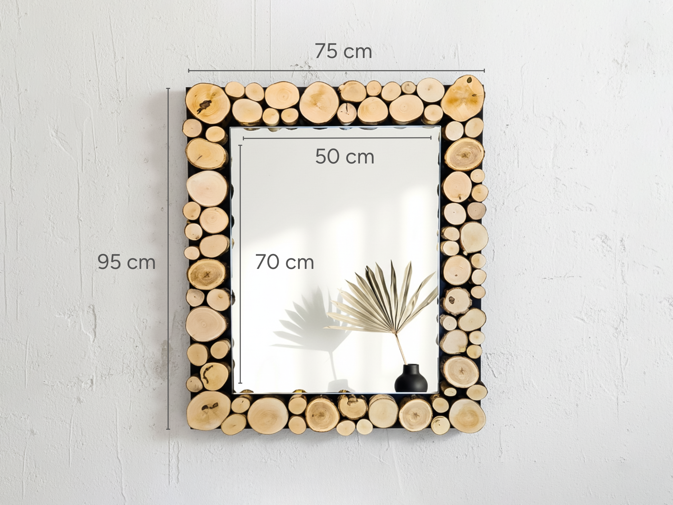 Lustro prostokątne EDGE 75x95 cm - krążki drewna